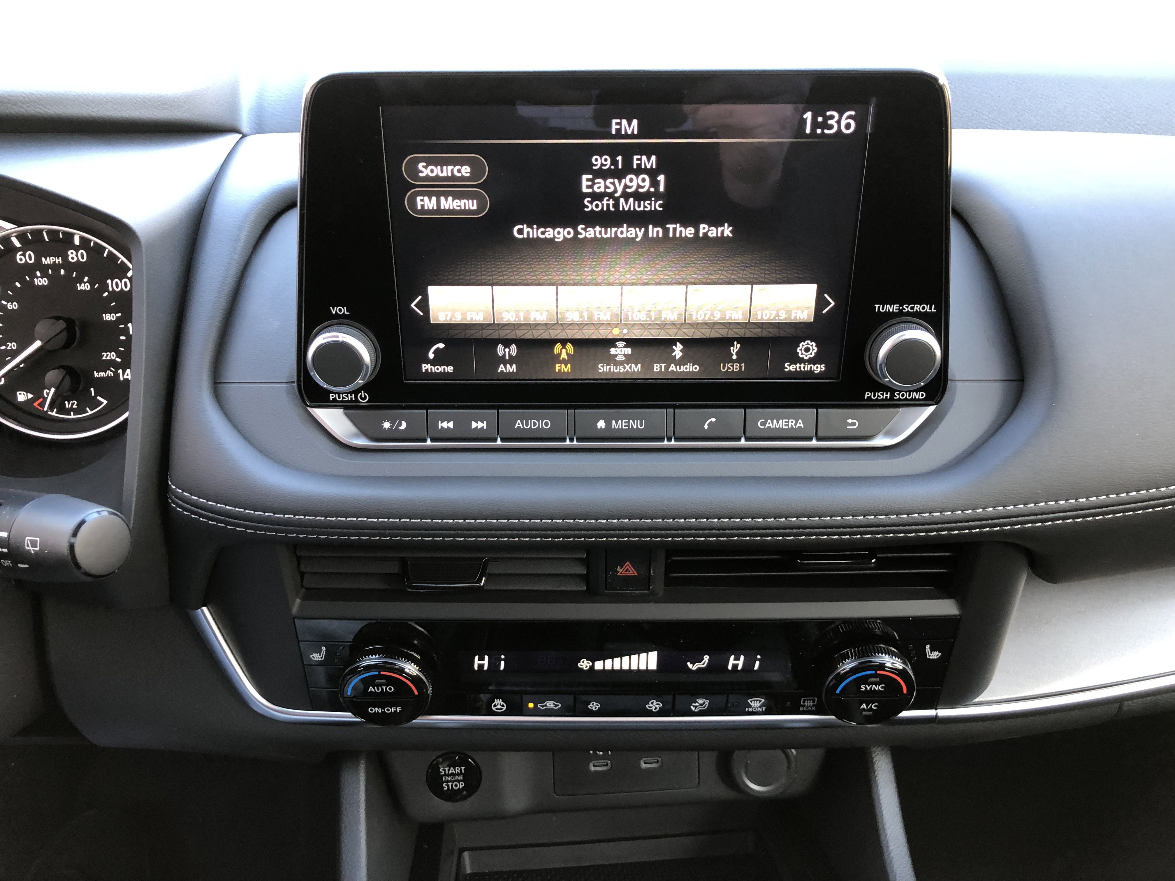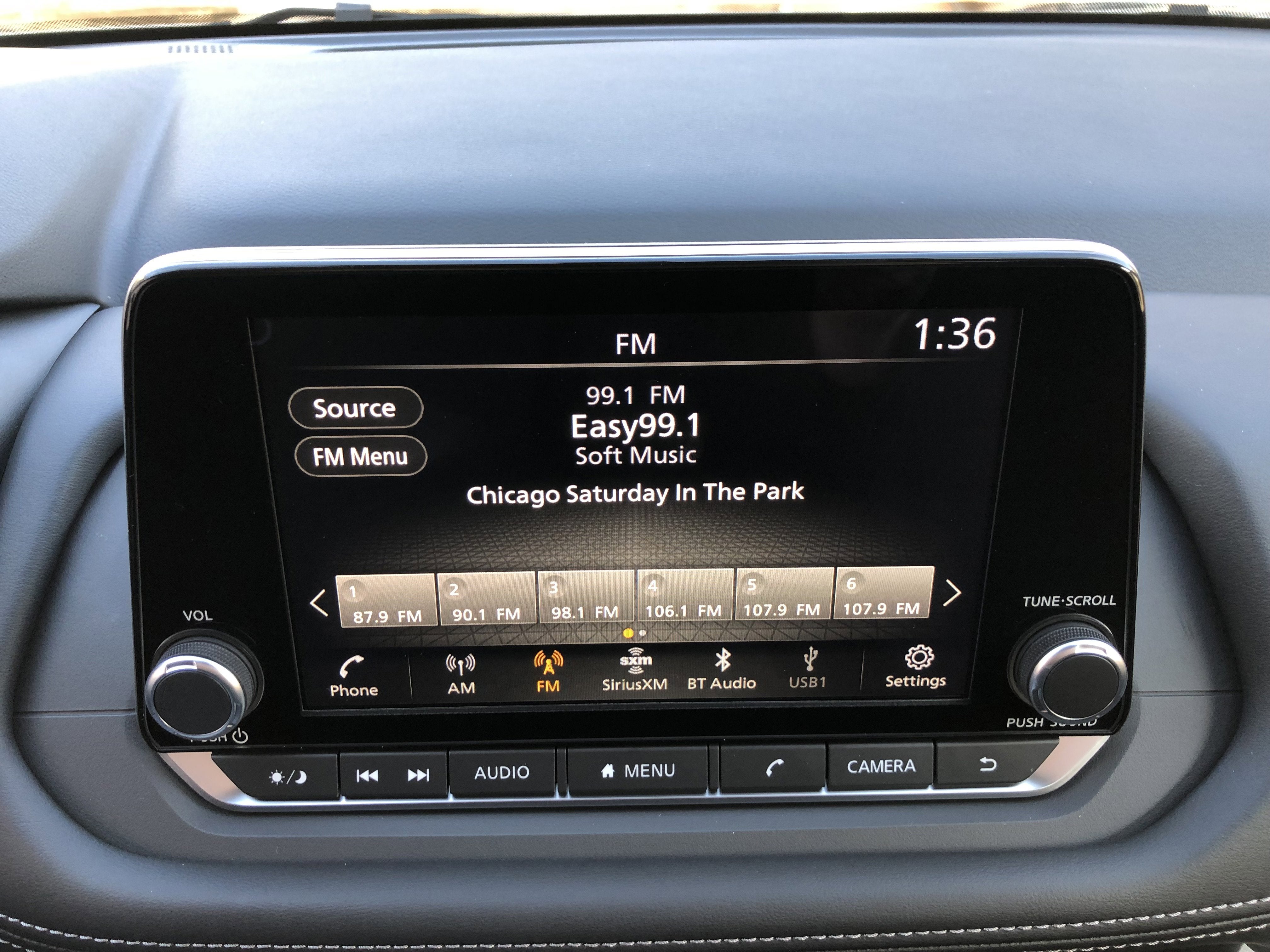 - Radio: AM/FM NissanConnect -inc: 6 speakers plus 2 tweeters, Apple CarPlay, Android Auto, 8" color touch screen display, Bluetooth®, 2 front USB type-C, Wi-Fi hotspot and NissanConnect Services powered by SiriusXM