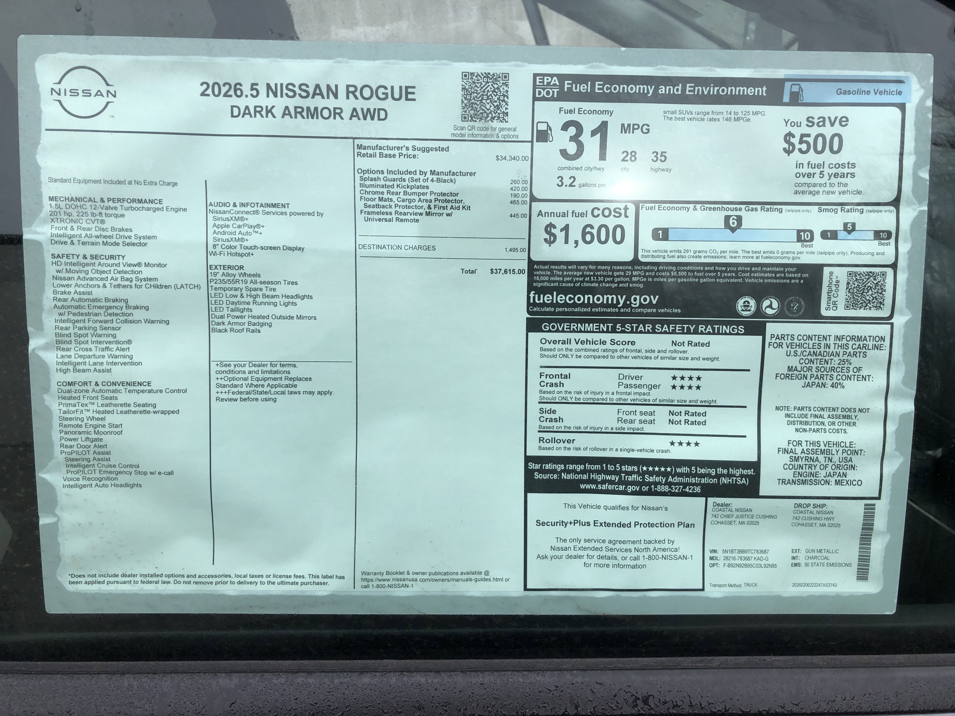Incentives and availability subject to change and not every customer will qualify for all discounts. Vehicles must be paid in full at time of sale to qualify for advertised prices. See dealer for details. Delivery fee may apply for out-of-state customers. All vehicle prices do not include tax, tags, registration, motor vehicles fees and/or document fees. Prices include all incentives. Buyer must qualify for all incentives and offers and take delivery at time of purchase. Residency restrictions may apply. Coastal Nissan is not responsible for pricing errors. Before purchasing this vehicle, it is your responsibility to address any and all differences between information on this website and the actual vehicle. Data on this website is compiled from publicly available sources believed by the publisher to be reliable. Final vehicle price is determined at final sale.