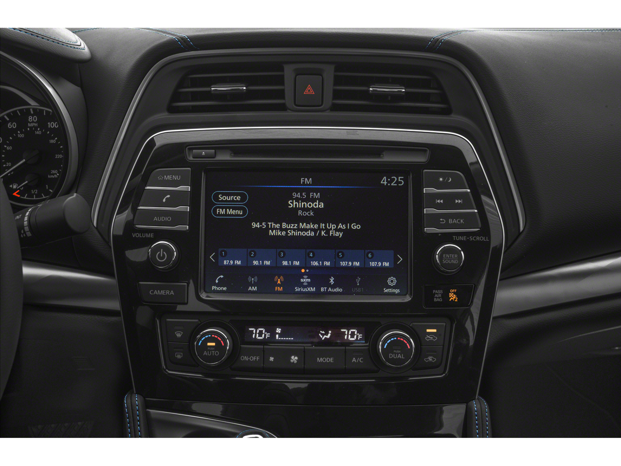 - Radio: AM/FM/CD Audio System -inc: MP3/WMA reader, 8 speakers, NissanConnect featuring Apple CarPlay and Android Auto, 8" color display w/multi-touch control, 2 front illuminated USB connection ports (1 Type-A, 1 Type-C) for iPod interface and other compatible devices, Bluetooth® hands-free phone system, streaming audio via Bluetooth®, hands-free text messaging assistant, SiriusXM satellite radio w/advanced audio features and auxiliary audio input jack